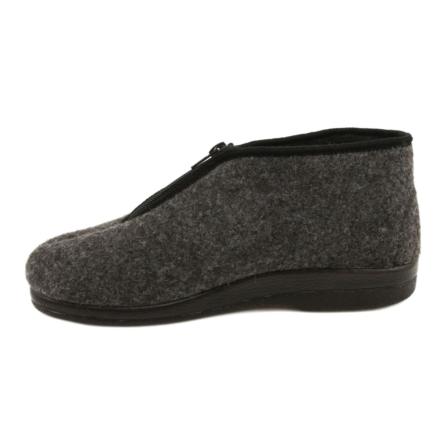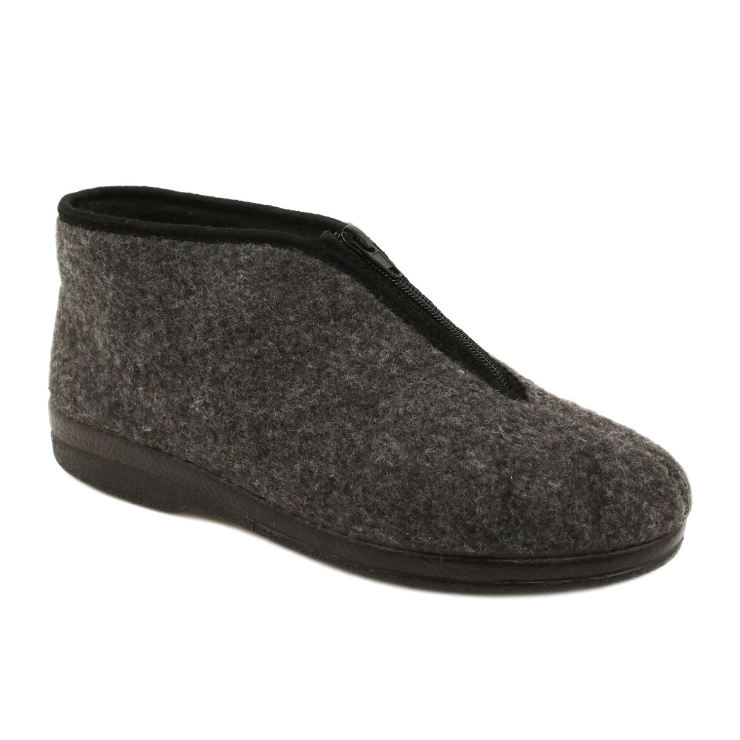 Ciepłe i wygodne kapcie domowe dla mężczyzn, które zapewnią komfort nawet w najchłodniejsze dni. Zewnętrzna część wykonana z filcu oraz futrzana wyściółka gwarantują przyjemny mikroklimat dla stóp, a lekka, wyprofilowana i elastyczna podeszwa z PU zapewnia stabilność i miękkość każdego kroku. Podwyższona cholewka i zamek ułatwiają zakładanie i pewnie trzymają stopę.
