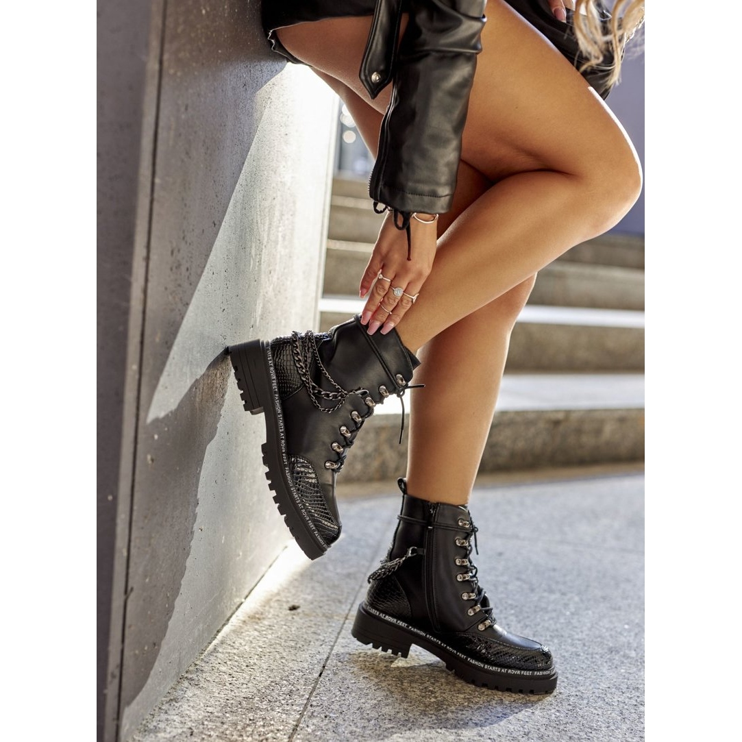 S.Barski Ocieplane Workery z łańcuchami — czarne