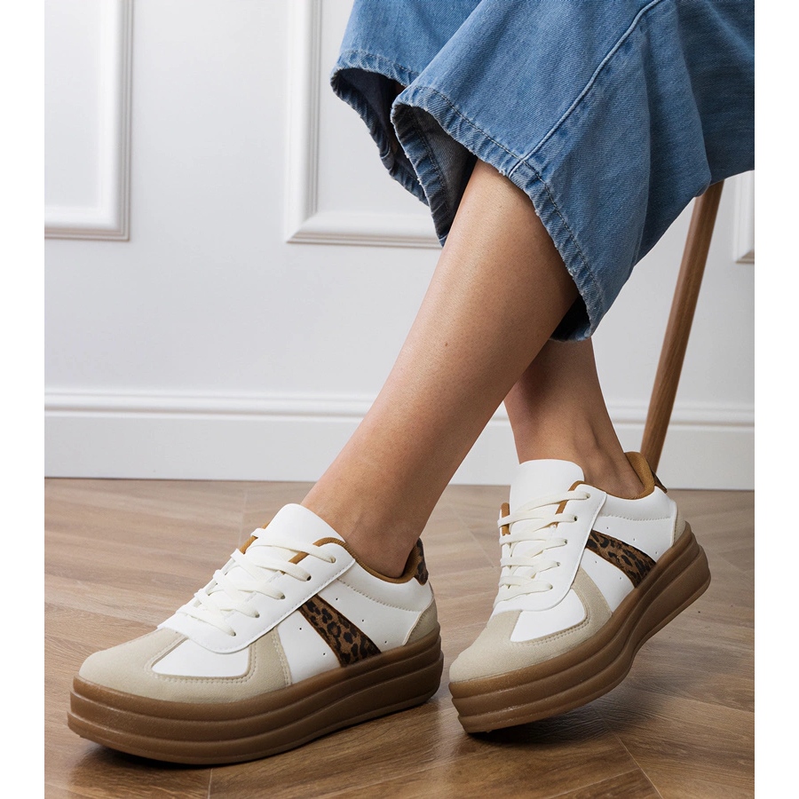 Inna marka Panterkowe sneakersy damskie na platformie białe
