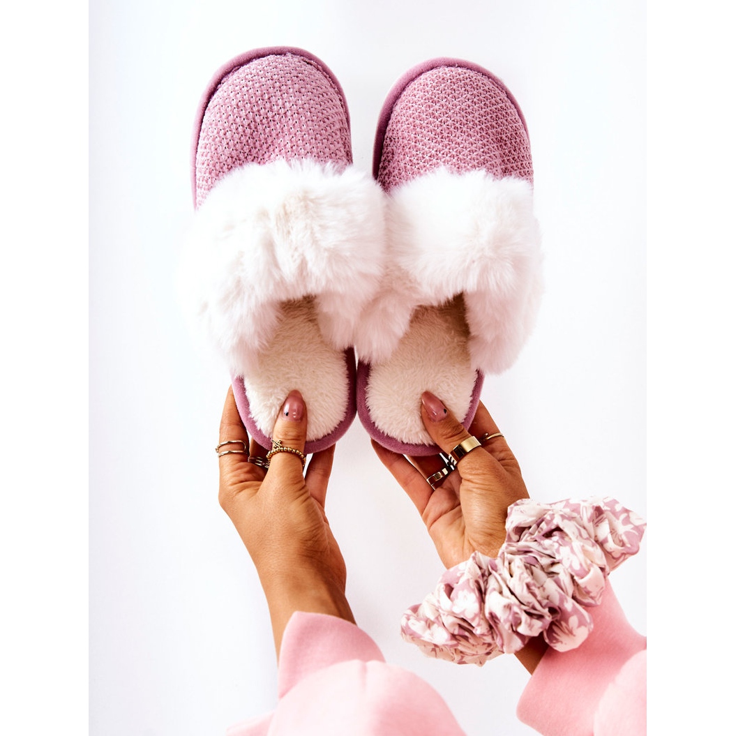 Inna marka Papcie Ocieplane Z Futerkiem Ciemnoróżowe Flamarin beżowy