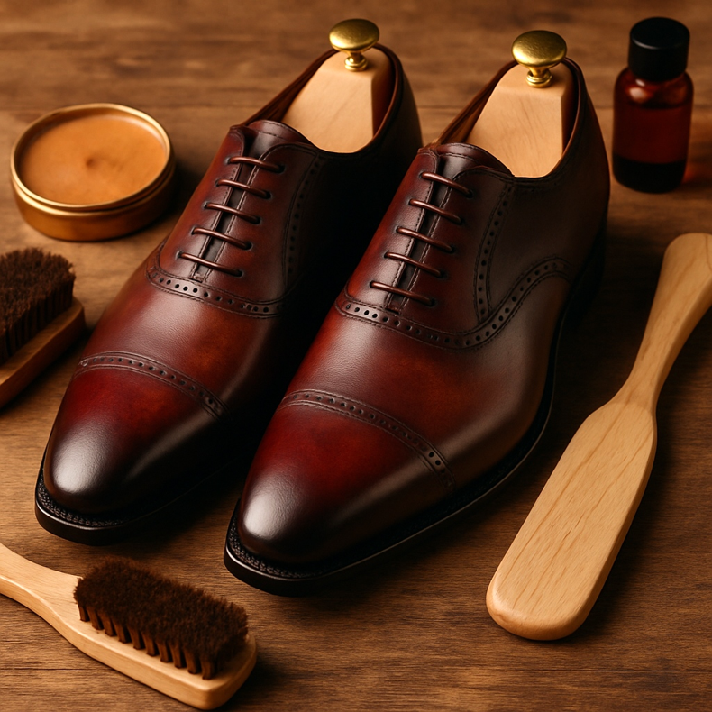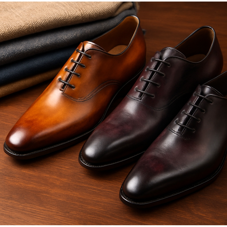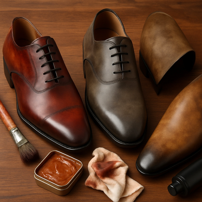 Historia: Początkowo patyna powstawała naturalnie — skóra ciemniała przez lata noszenia, kremy i światło. Dziś manufaktury (Berluti, Corthay, polskie warsztaty) świadomie kreują ten efekt już na etapie produkcji.