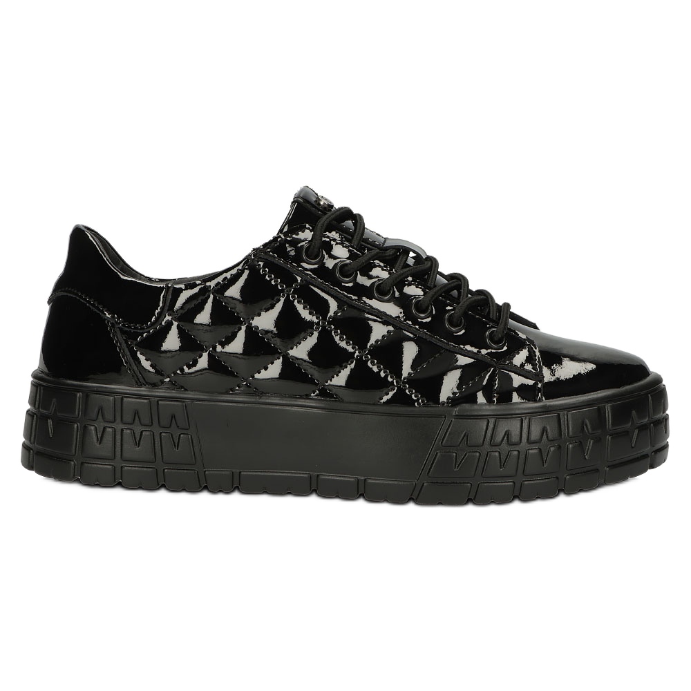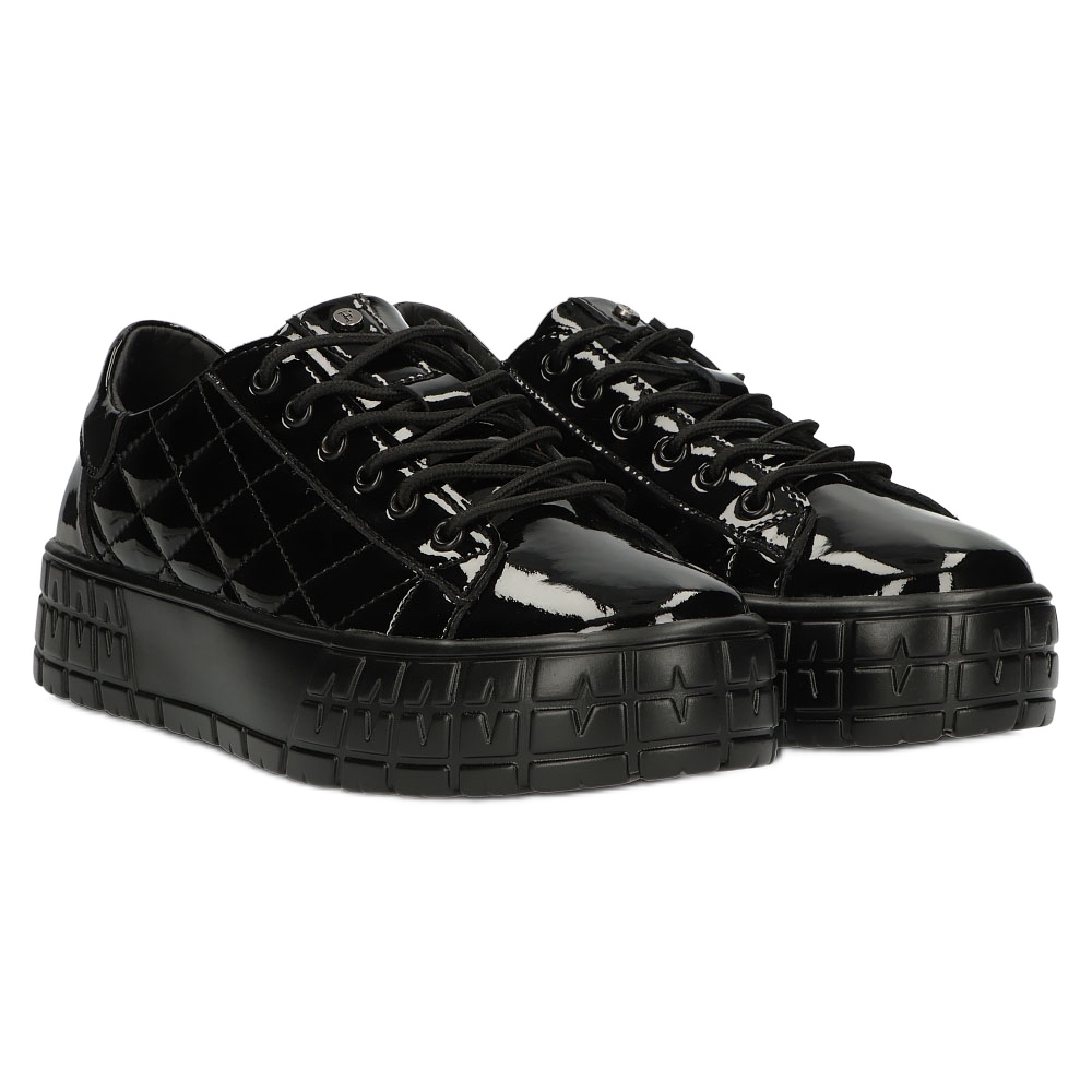 Filippo DP3932/22 BK — pikowane, lakierowane trampki damskie w eleganckiej czerni