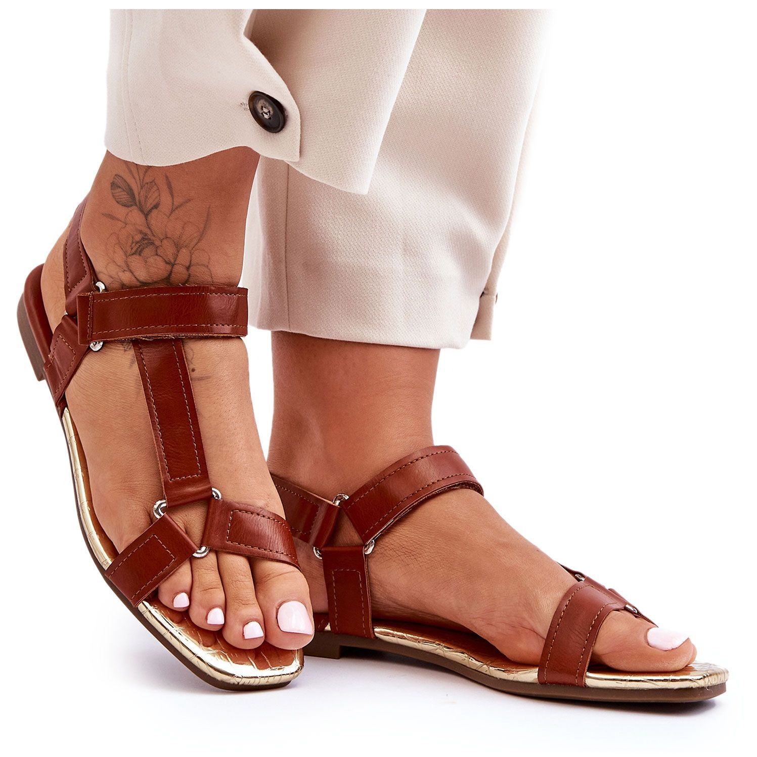 Płaskie Damskie Sandały Na Rzep Camel Lissa — brązowe