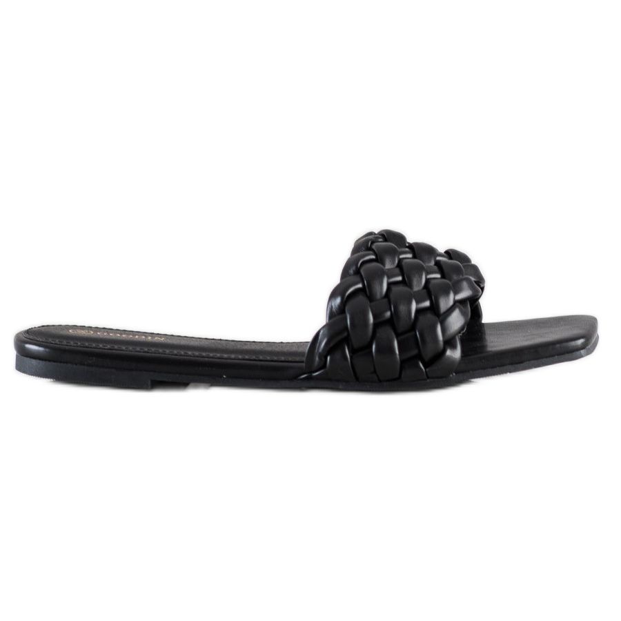 Goodin Goodin Plecione Klapki Z Eko Skóry czarne
