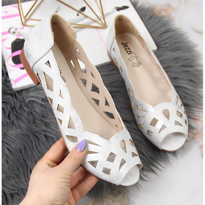Jezzi Półbuty damskie ażurowe baleriny srebrne Jezzi srebrny