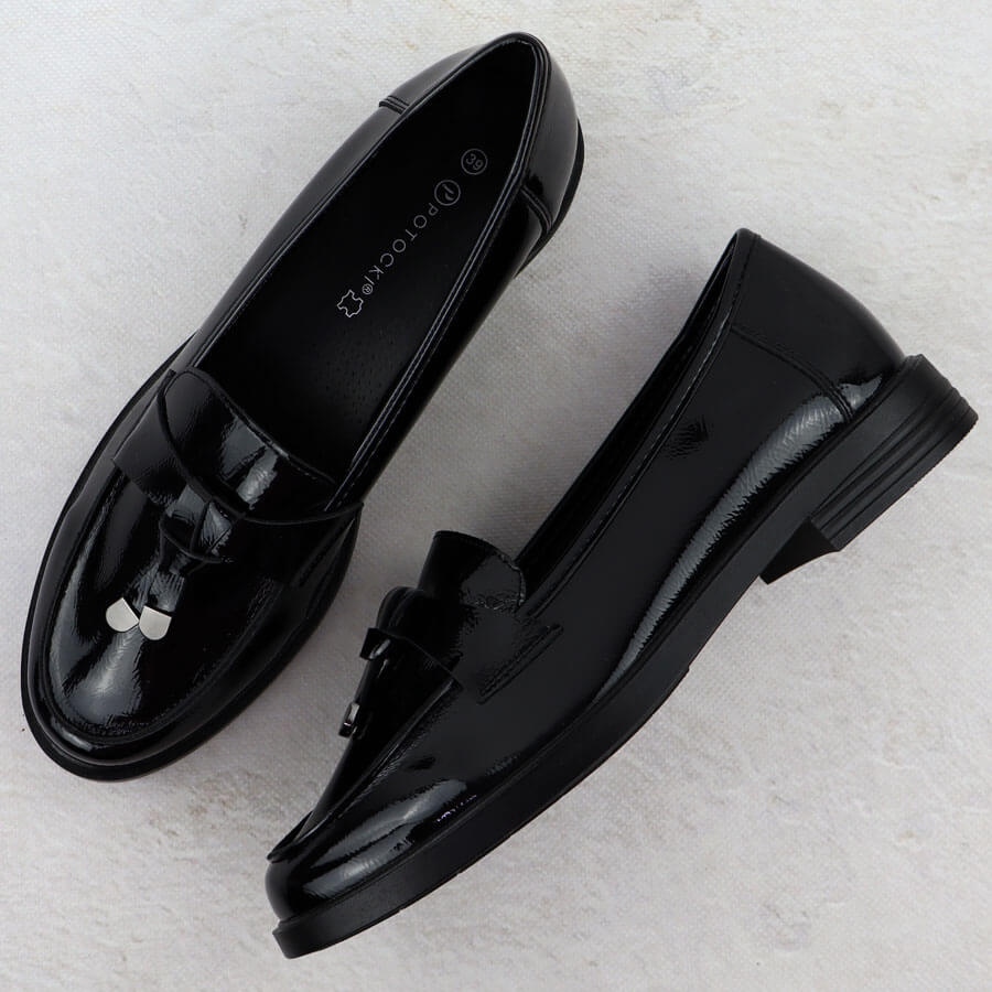 Potocki Półbuty damskie lakierowane lordsy czarne Potocki SZ12369