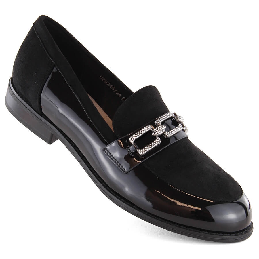 Szczegóły: Półbuty damskie mokasyny z cyrkoniami czarne Filippo DP6245