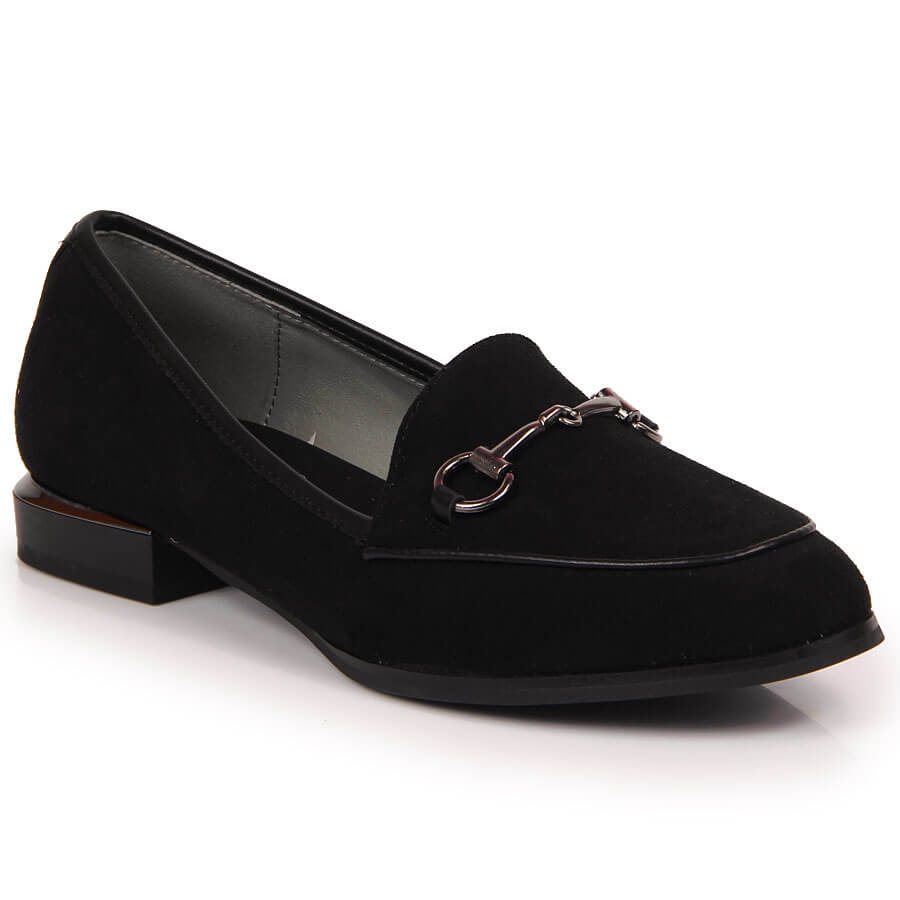 Jezzi Półbuty damskie mokasyny z ozdobą czarne Jezzi