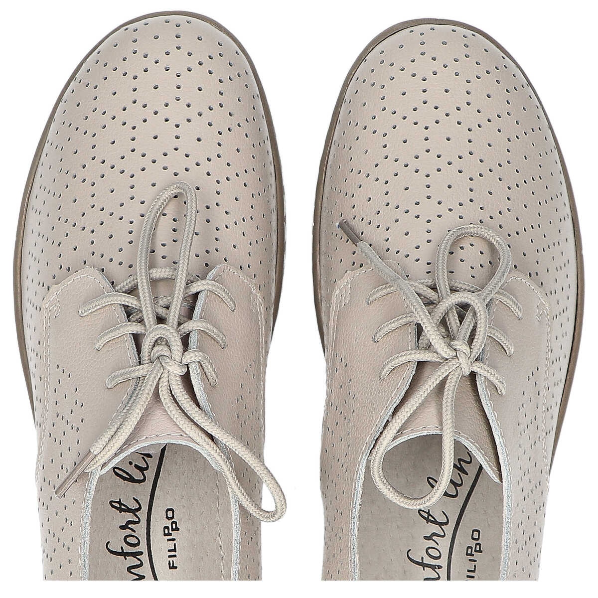 Półbuty Filippo DP1320/20 Gr Grey to doskonały wybór dla kobiet poszukujących elegancji połączonej z wygodą. Te stylowe półbuty dostępne są w przyjemnych kolorach: granatowym, szarym i żółtym, co sprawia, że idealnie wpisują się w różnorodne stylizacje, od codziennych, po bardziej formalne.