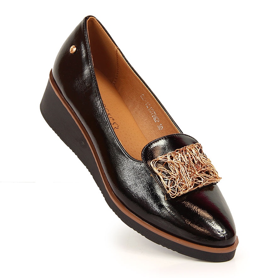 Szczegóły: Półbuty lakierowane na koturnie wsuwane czarne Potocki