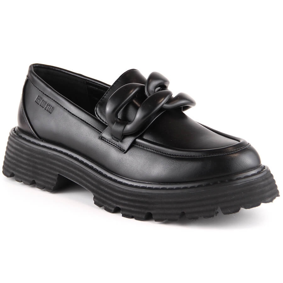 Big Star Półbuty mokasyny na obcasie i platformie z łańcuchem czarne Big Star LL274580