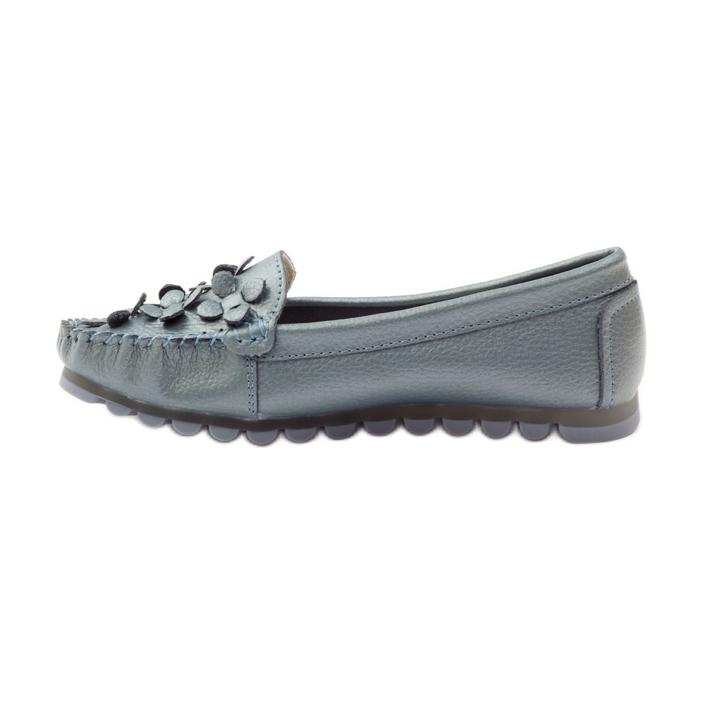 Mokasyny osadzone są na delikatnym centymetrowym spodzie, co sprawia, że stają się idealnym towarzyszem długich spacerów. Wewnątrz znajduje się skórzana wkładka, podbita miękką gąbką, która pomimo niskiego obcasa gwarantuje wygodę nawet podczas całodziennego użytkowania.
