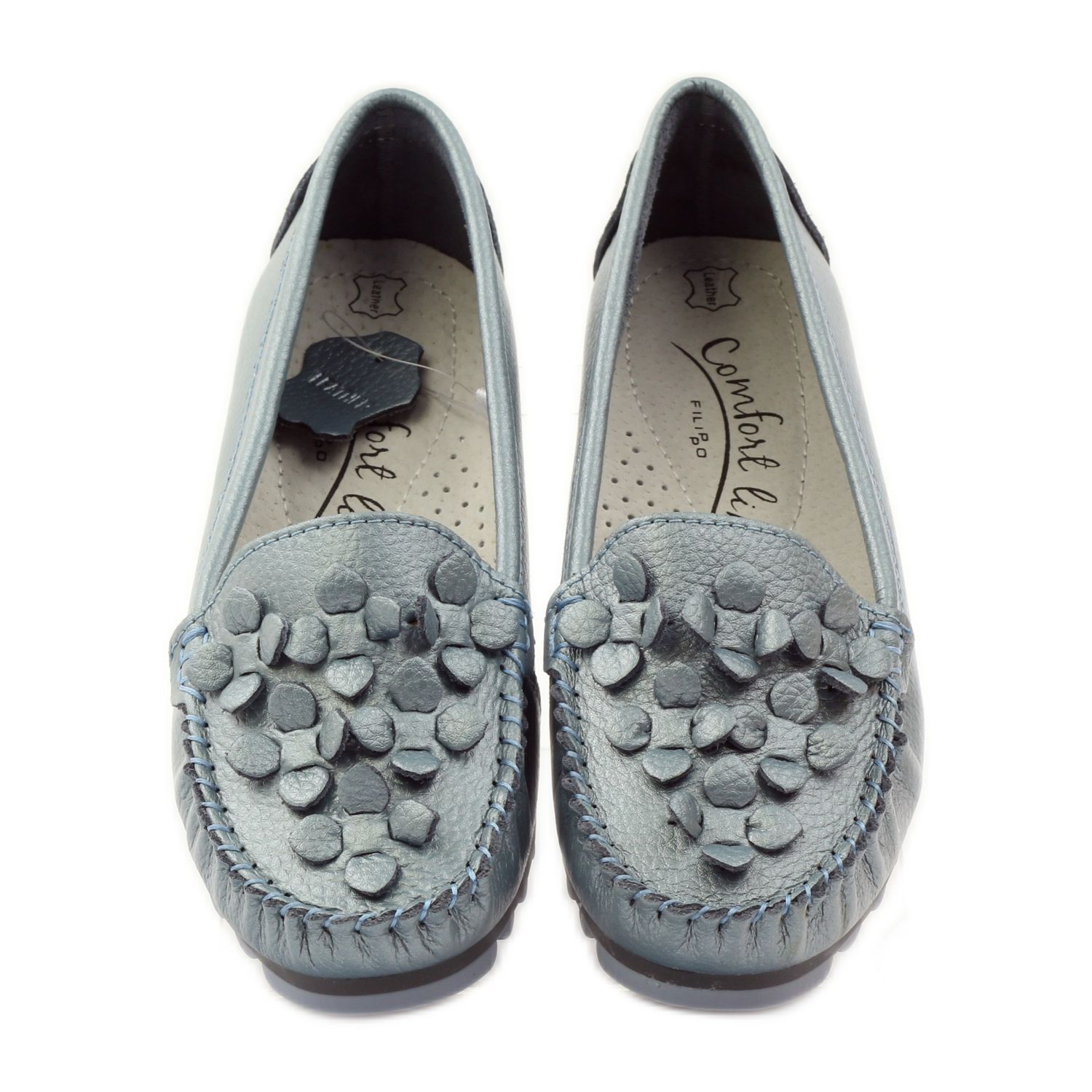 Filippo Półbuty mokasyny niebieskie F 138 to idealne obuwie dla kobiet, które pragną cieszyć się zarówno stylem, jak i komfortem wiosną i latem. Te eleganckie mokasyny wyróżniają się pięknym niebieskim kolorem oraz metalizowanym wykończeniem, które przyciąga wzrok. Dodatkowo, subtelne zdobienia w formie kwiatków na przodzie cholewki dodają im wyjątkowego uroku.