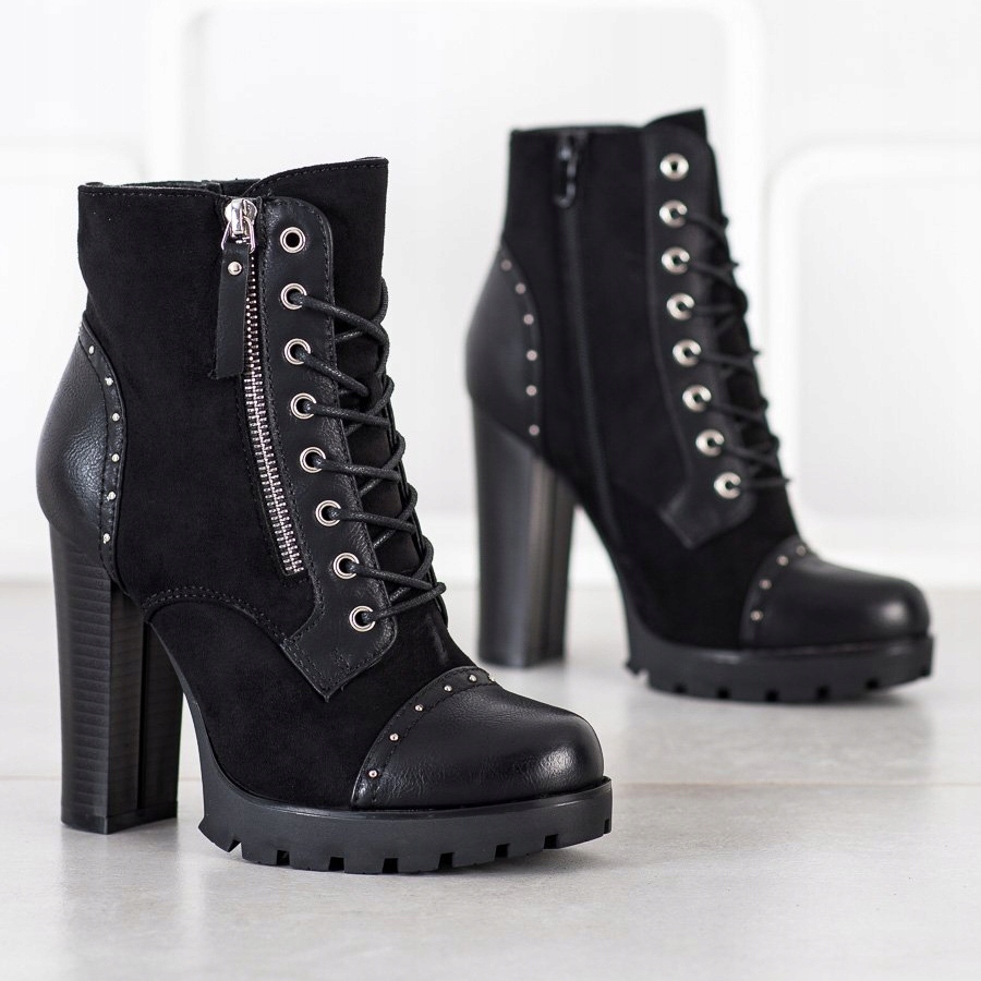 Kayla Kayla Rockowe Botki Na Obcasie czarne