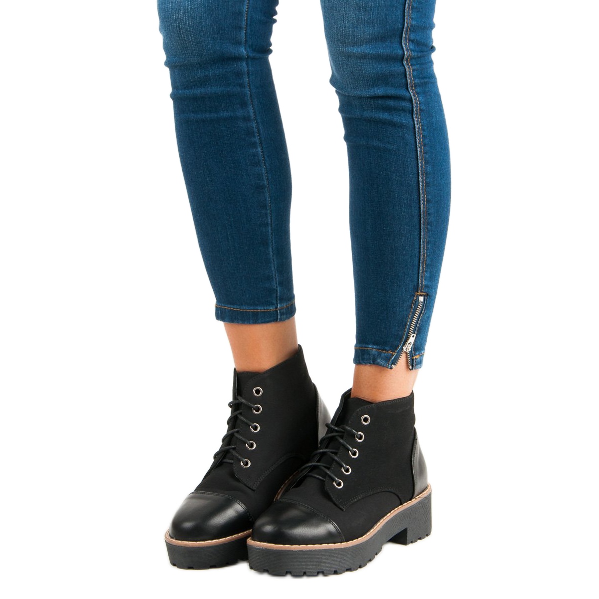 Rockowe botki workery w kolorze czarnym to must-have w każdej garderobie miłośniczki mody. Te stylowe buty wyróżniają się oryginalnym designem, który zachwyca nowoczesnością i charakterem. Dzięki grubemu, przyciągającemu uwagę obcasowi o wysokości 3 cm oraz solidnej platformie, każdy krok w tych botkach to połączenie wygody z modowym sznytem.