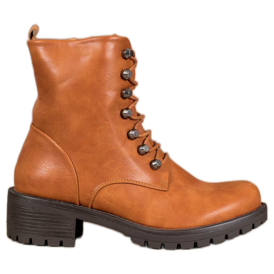 Kayla Kayla Rockowe Workery Z Eko Skóry brązowe