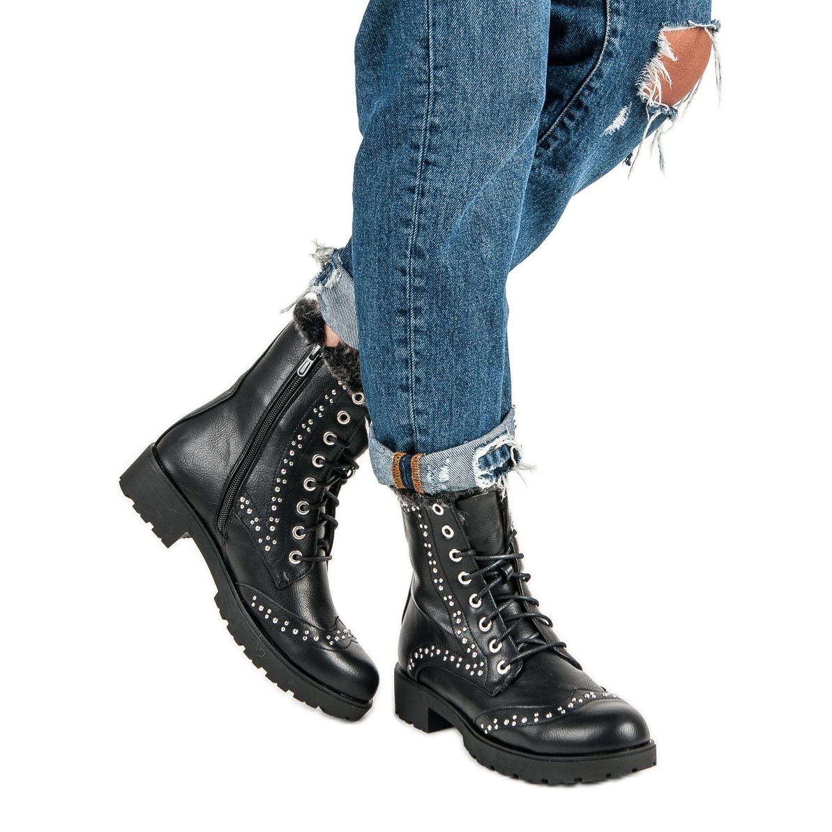**Czarne Rockowe Workery z Ociepleniem Butymodne**