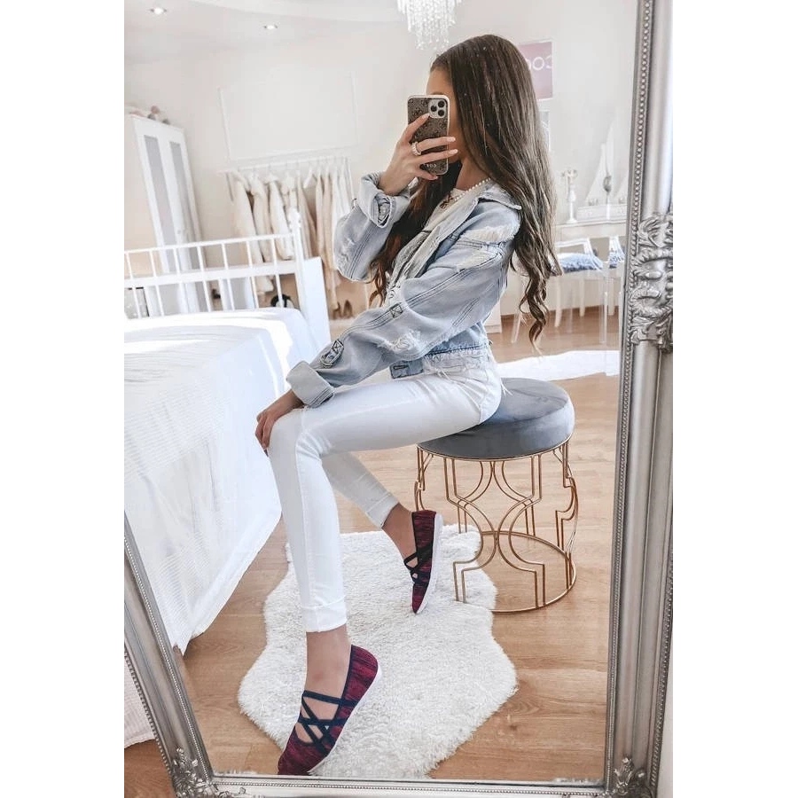Wykonane z wysokiej jakości tkaniny, baleriny oferują przewiewność i komfort noszenia nawet w najcieplejsze dni. Ozdobne gumowe tasiemki, mocowane przy podeszwie, skutecznie podtrzymują stopę, gwarantując stabilność podczas chodzenia.