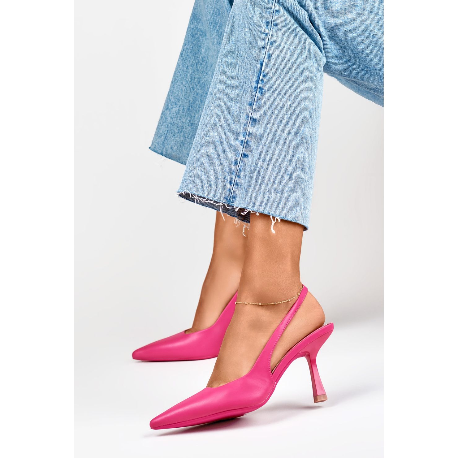 Szczegóły: Różowe czółenka z odkrytą piętą