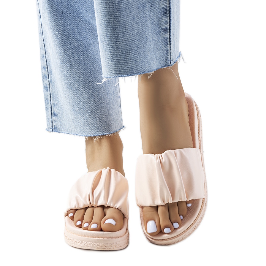 Różowe klapki Baldwin to idealny wybór na letnie dni: efektowna platforma, miękka wkładka i cholewka z wysokiej jakości skóry ekologicznej z delikatnym marszczeniem tworzą stylowy, a jednocześnie komfortowy model do codziennych stylizacji.