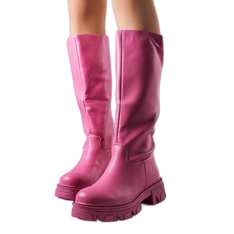 Charakterystyczna dla tych różowych kozaków jest ich wysokość – 40,5 cm, idealna dla osób chcących ochraniać swoje nogi przed zimnem, oferująca elegancki wygląd do kolana.