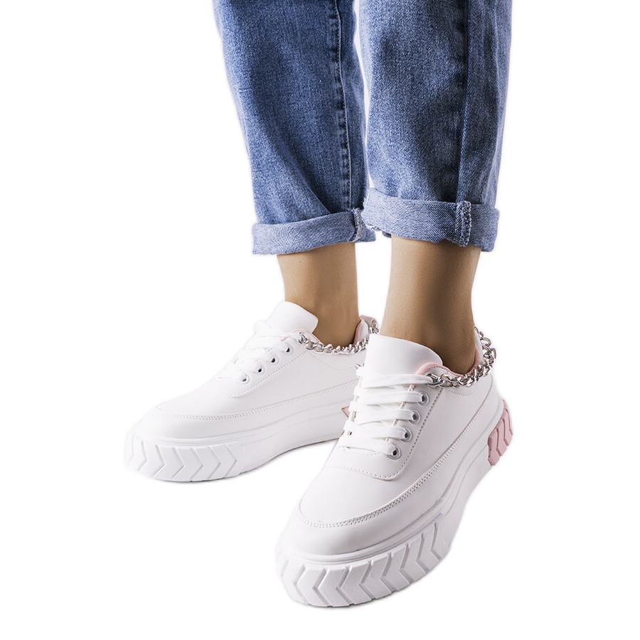 Inna marka Różowe sneakersy z łańcuchem Thilda białe