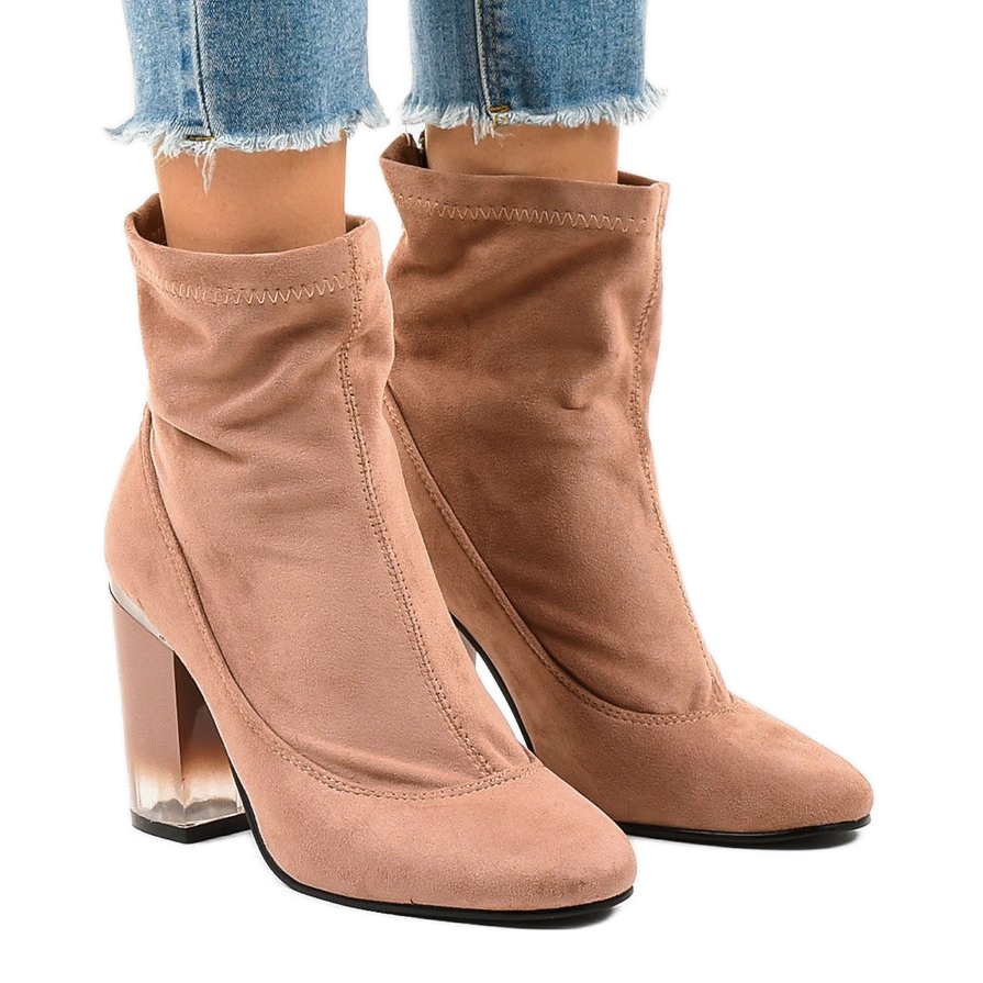 Inna marka Różowe zamszowe botki na słupku H8-93