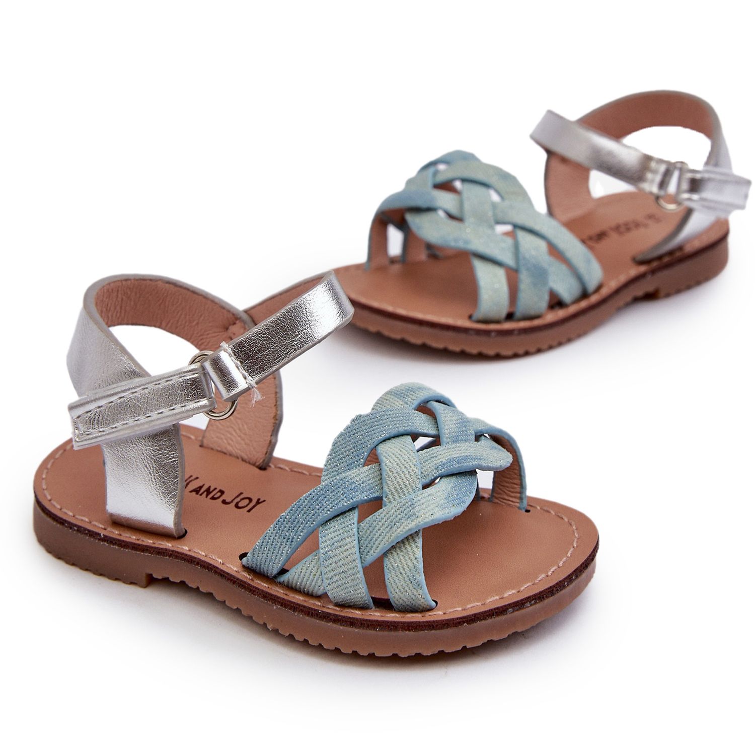 Inna marka Sandałki Dziecięce Zapinane Na Rzep Z Przeplatającymi Się Paseczkami Niebieskie