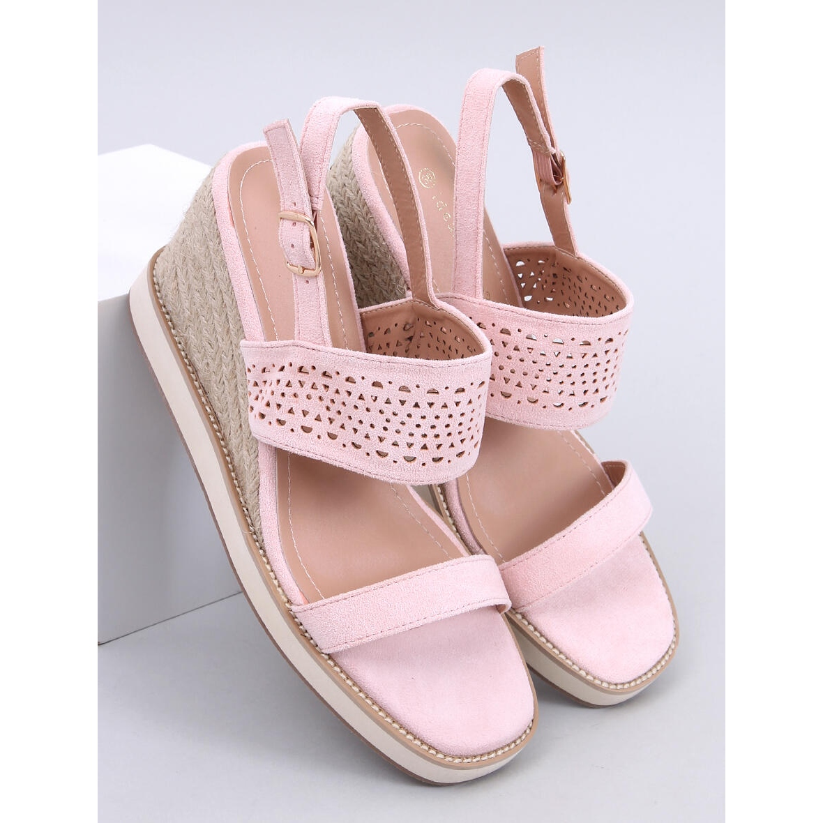 Szczegóły: Sandałki espadryle ażurowe na koturnie różowe