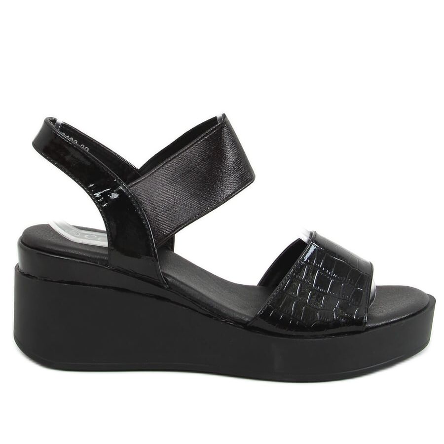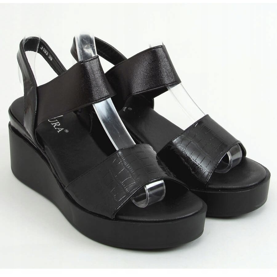 Inna marka Sandałki na koturnie czarne 3193 Black