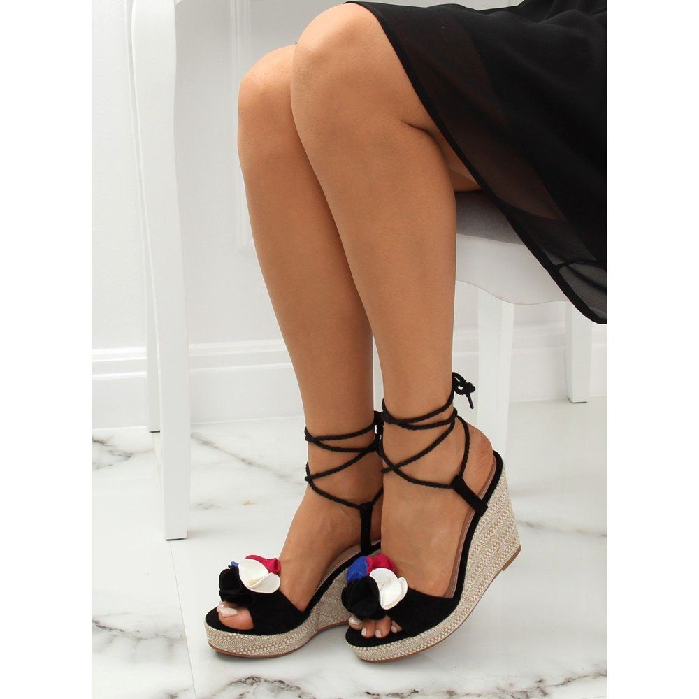 Inna marka Sandałki na koturnie czarne YY27P Black
