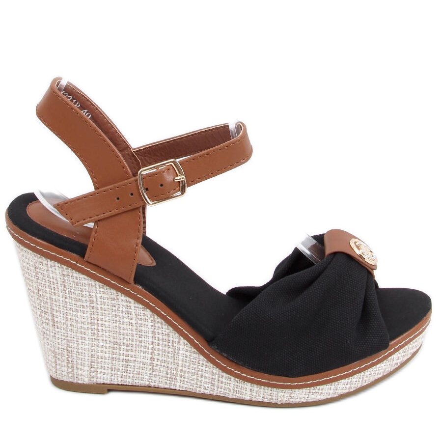 Inna marka Sandałki na koturnie Leyla Black brązowe