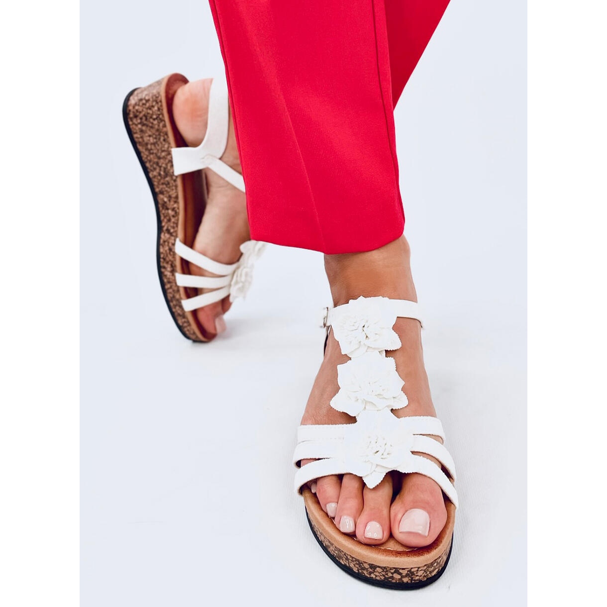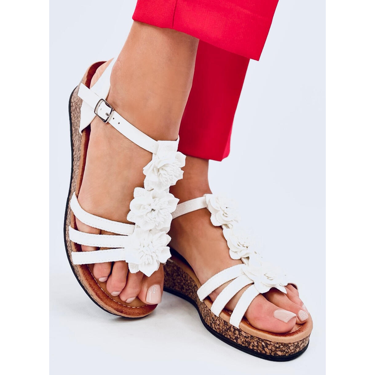 Inna marka Sandałki na koturnie z kwiatami Fisken White białe
