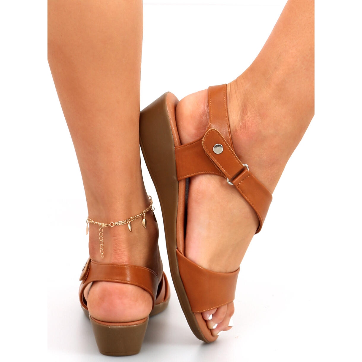 Inna marka Sandałki na niskim koturnie Shary Camel brązowe
