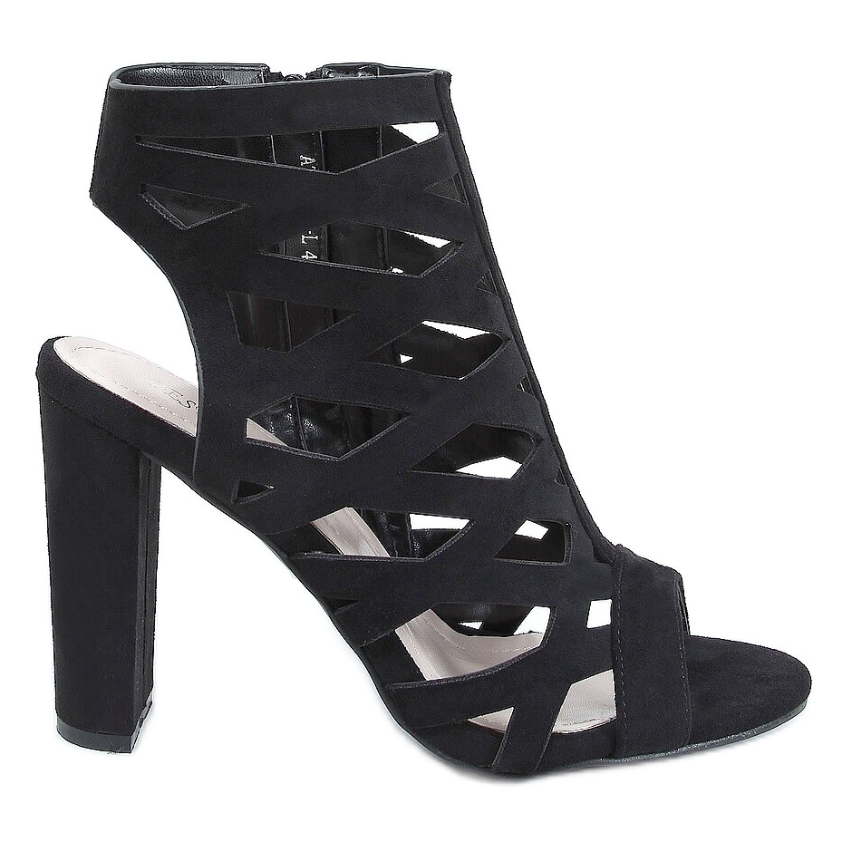Inna marka Sandałki na obcasie ażurowe czarne AT-0666-L Black