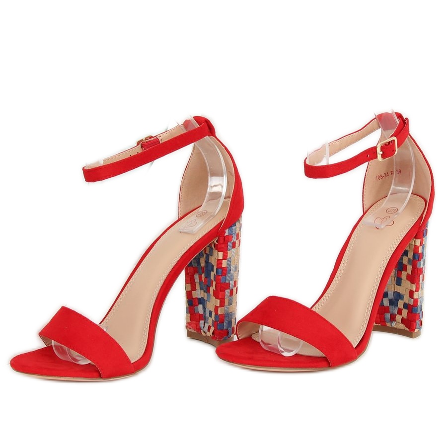 Szczegóły: Sandałki na obcasie czerwone 708-24 Red wielokolorowe