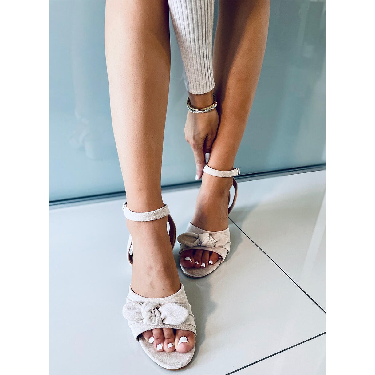 Ich prosty fason z uwodzicielską kokardą przyciąga spojrzenia, a regulowane zapięcie podkreśla delikatność kostki, zapewniając jednocześnie stabilność. Wykonane z wysokiej jakości ekologicznego zamszu, oferują nie tylko modny wygląd, ale również dbałość o środowisko.