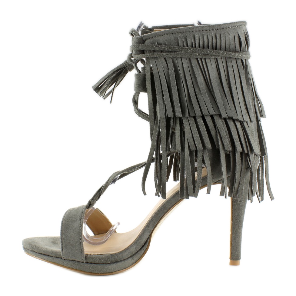 Szczegóły: Sandałki na obcasie z frędzlami 8125 Grey szare