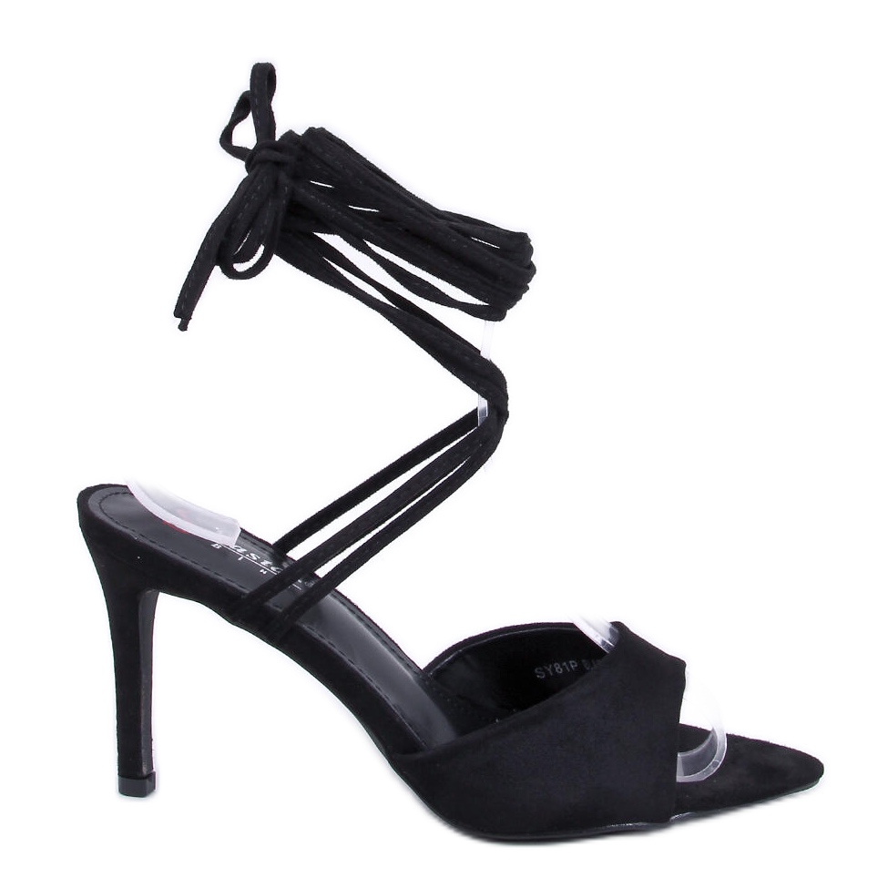 Inna marka Sandałki na szpilce wiązane Gennaro Black czarne