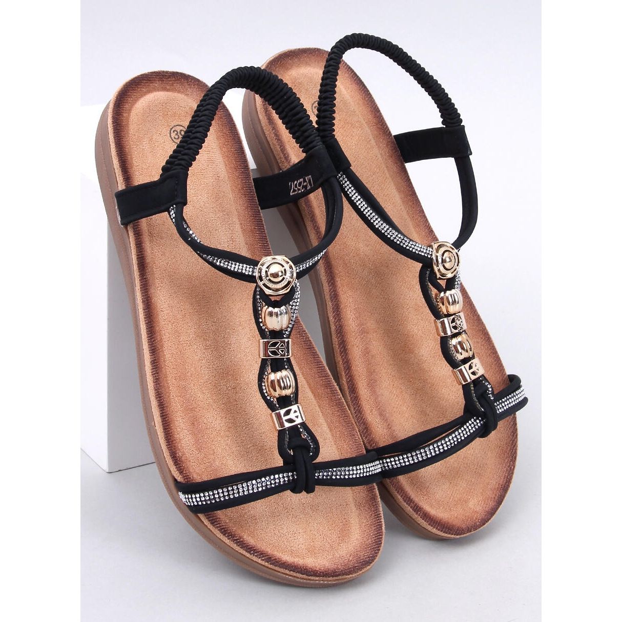 Poznaj sandałki zdobione cyrkoniami Isabey Black – idealny wybór dla kobiet, które pragną połączyć elegancję z wygodą na co dzień. Te czarne sandały na grubej podeszwie wyróżniają się wyjątkowym stylem, dzięki złotym detalom i błyszczącym cyrkoniom, które dodają im niepowtarzalnego blasku. To doskonała opcja dla tych, którzy nie chcą martwić się o dodatki, ponieważ te sandałki są wyrazistą ozdobą same w sobie!