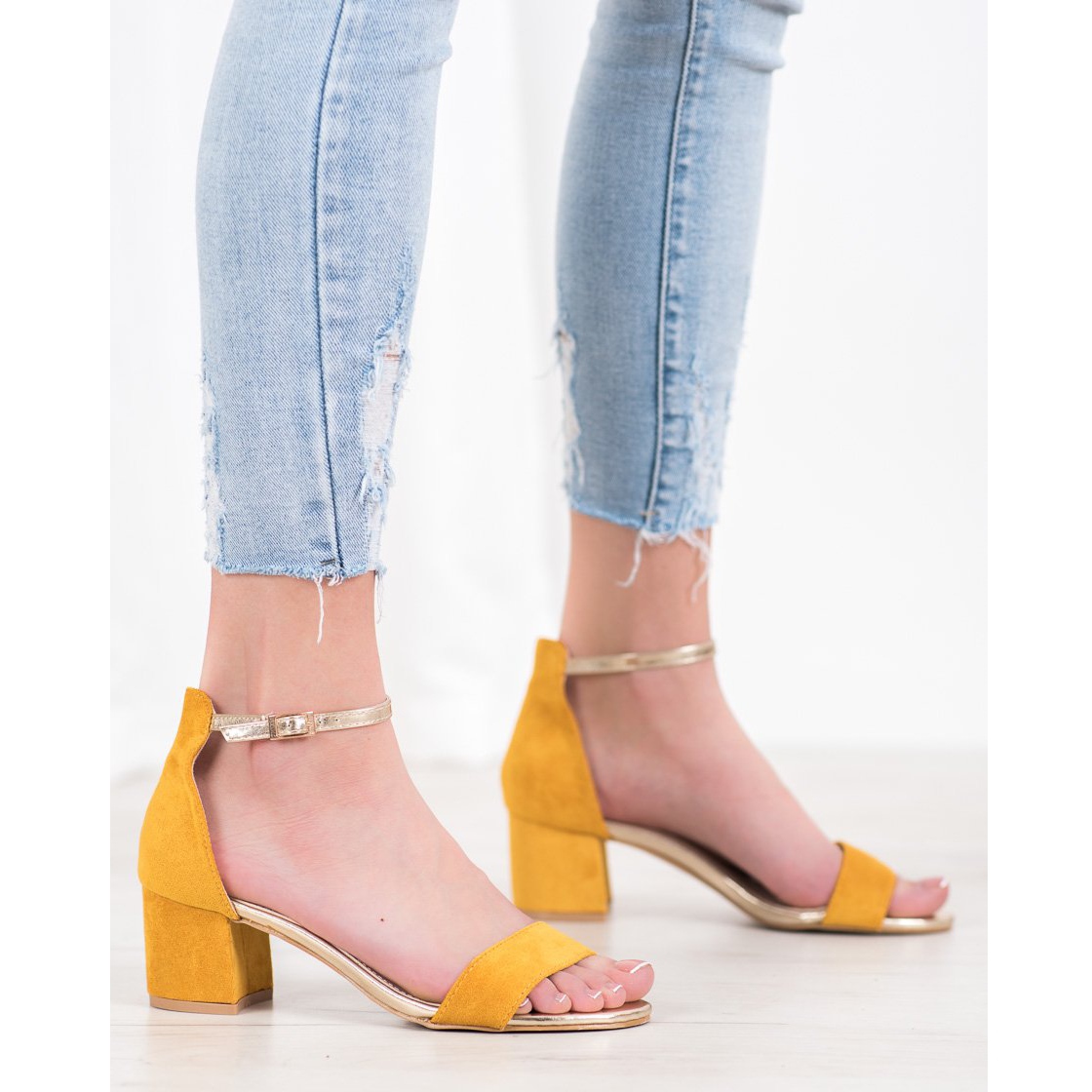 Prezentujemy żółte sandałki Seastar ze złotym paskiem – idealny wybór dla każdej eleganckiej kobiety, która pragnie dodać odrobinę świeżości i stylu do swojej letniej garderoby. Te wyjątkowe buty na 6-centymetrowym, szerokim obcasie wspaniale podkreślają sylwetkę, zapewniając jednocześnie komfort noszenia.