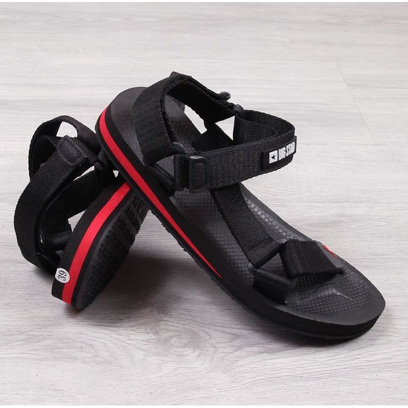 Sandały Big Star INT1173A — czarne, sportowe i wygodne na lato. Lekka, tekstylna cholewka ze stylowym wzorem z logo producenta oraz regulowane zapięcie na rzepy zapewniają pewne dopasowanie i szybkie zakładanie. Miękka wkładka z pianki i płaska podeszwa (ok. 2 cm) gwarantują codzienny komfort podczas spacerów po mieście, wyjazdów i letnich aktywności w stylu lifestyle.