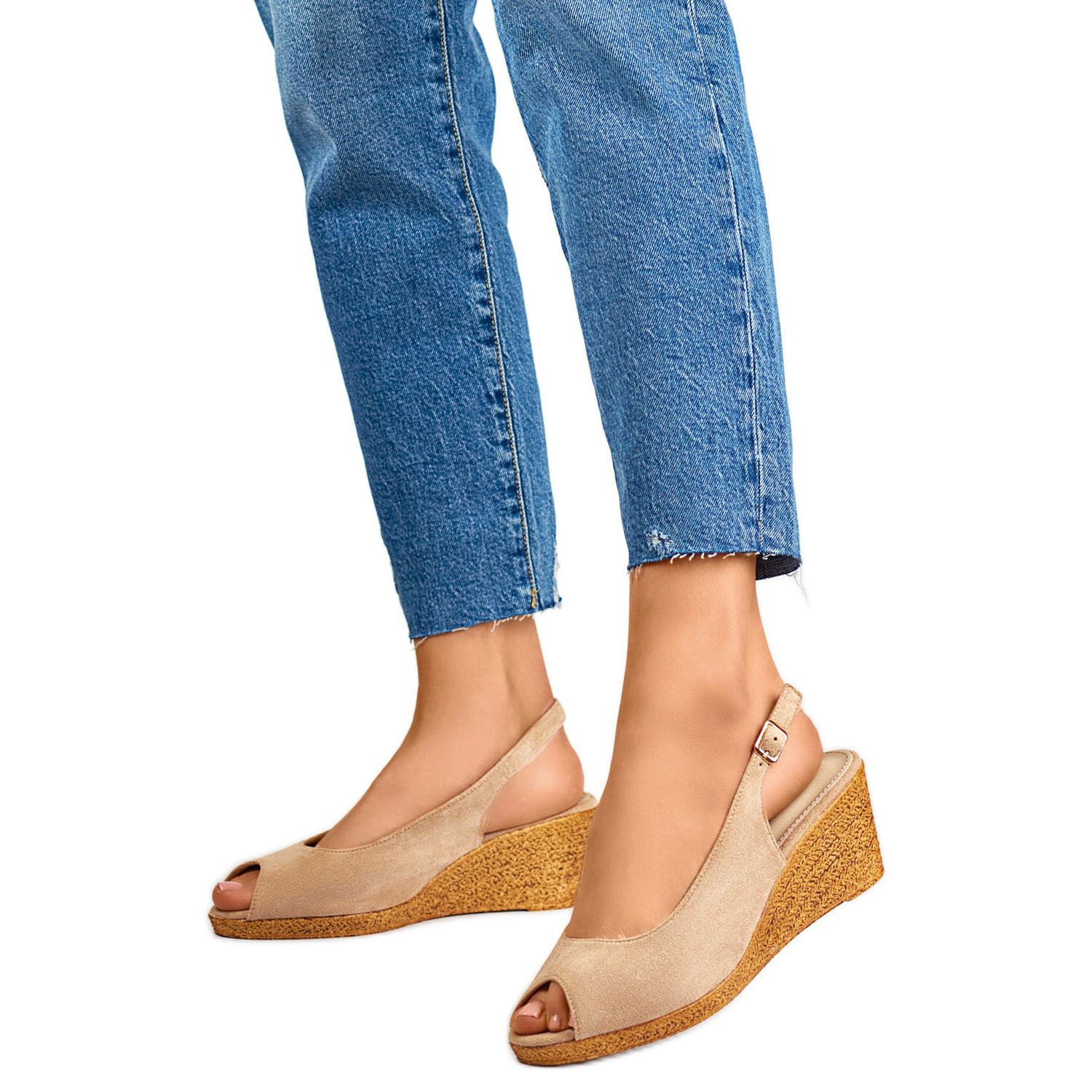 Inna marka Sandały Damskie na Koturnie GD-FL653BE beżowe beżowy