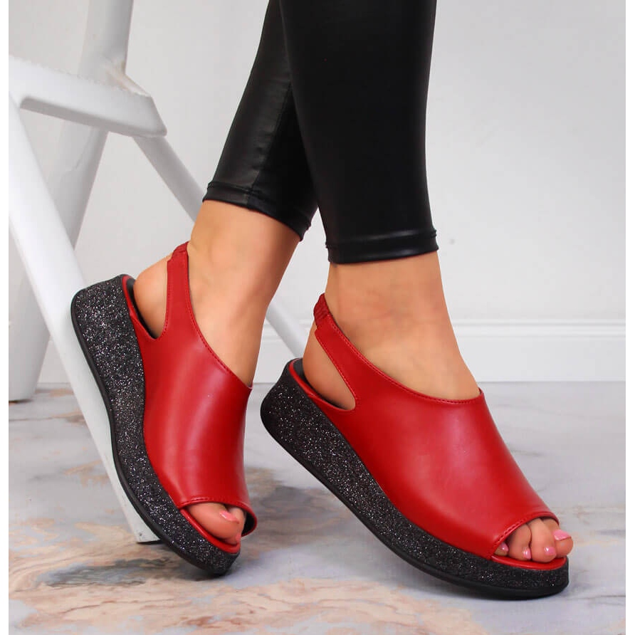 NAVY DOT Sandały damskie na platformie czerwone Navy Dot