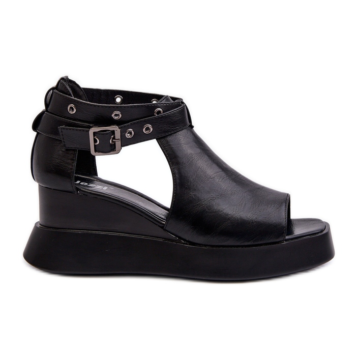 Jezzi Jezzi Sandały Damskie Na Platformie I Koturnie Z Eko Skóry Czarne Hloeli