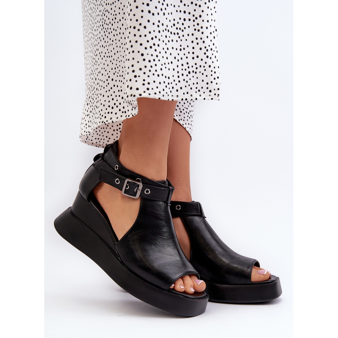 Szczegóły: Jezzi Sandały Damskie Na Platformie I Koturnie Z Eko Skóry Czarne Hloeli