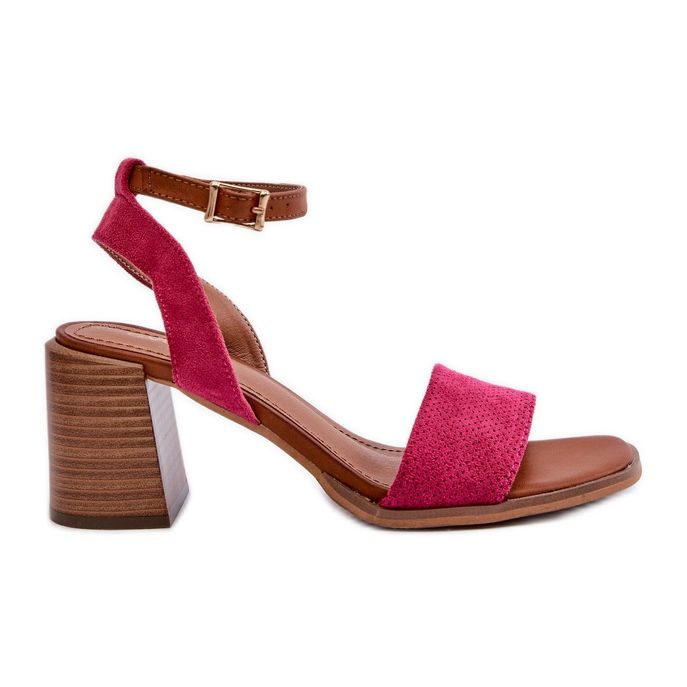 Szczegóły: Sandały Damskie Na Słupku Z Eko Zamszu Fuksja Ronvia różowe