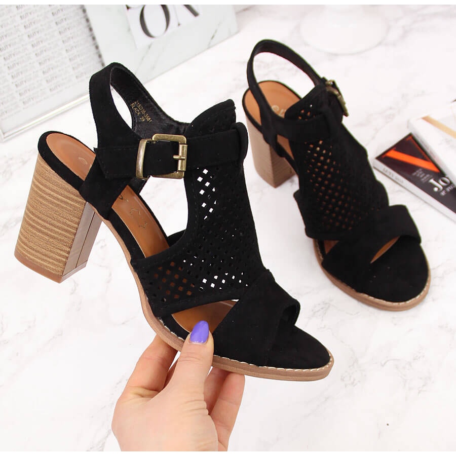 Szczegóły: Sandały damskie zabudowane na słupku czarne eVento