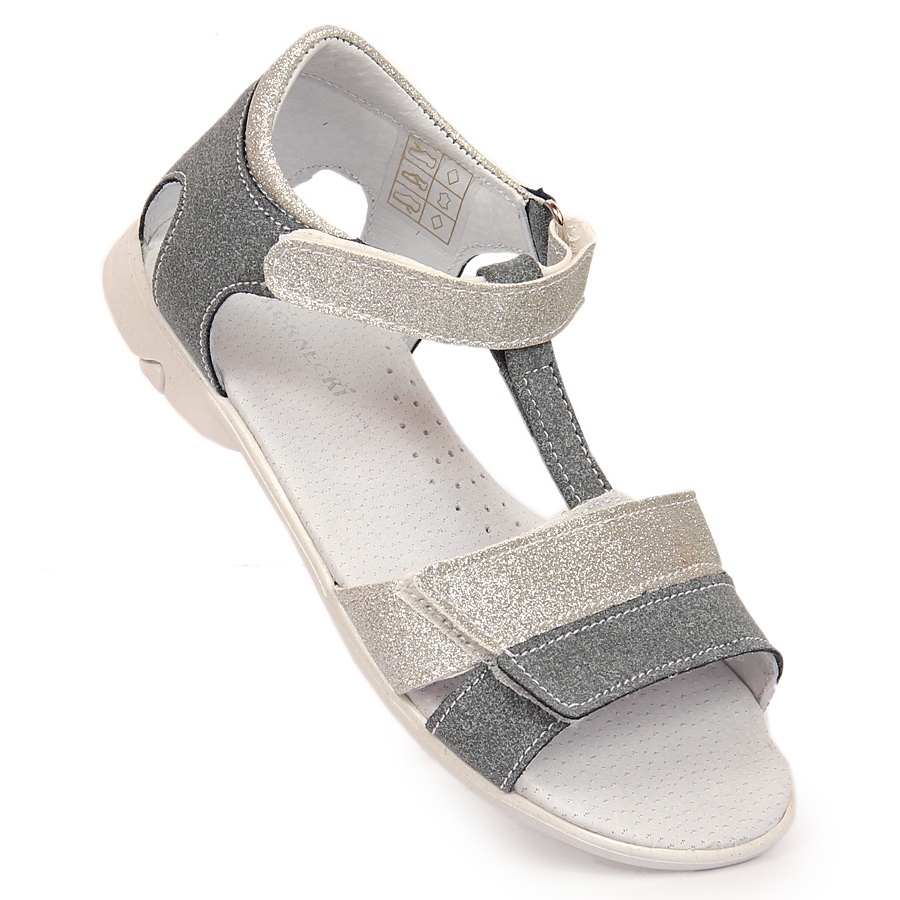 Szczegóły: Sandały dziewczęce na rzepy srebrne Kornecki 6323 srebrny szare