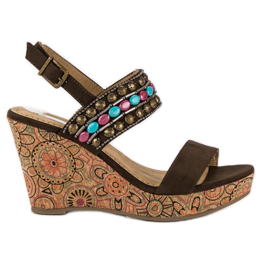 Szczegóły: Corina Sandały na korkowej koturnie brązowe